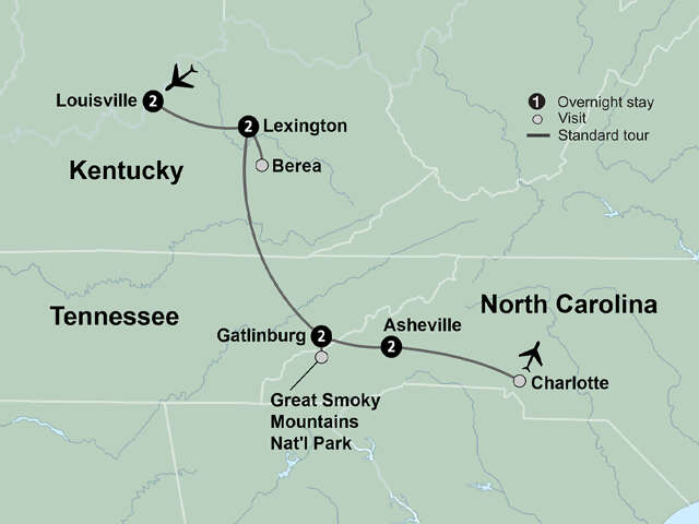 Asheville - Charlotte - Tour EndsToday your tour comes to an end. As you venture home, take the holiday spirit and the warmth of America’s Southeast with you. Meal included: Breakfast