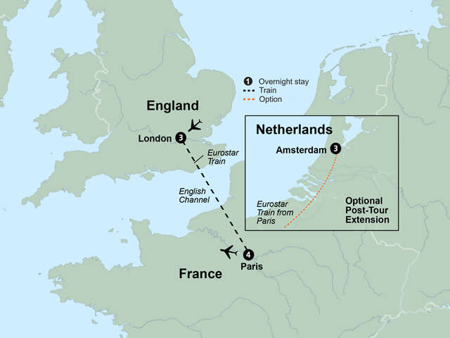 From cosmopolitan London to romantic Paris, see the best of the world's most captivating cities. To help make the most of your getaway, unpack just once in each city. Enjoy a leisurely-paced journey with plenty of time for independent exploration.