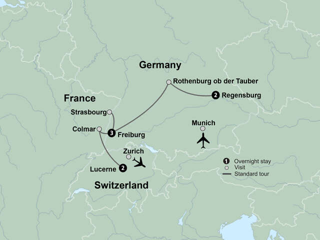 Discover the holiday spirit throughout Germany, France, and Switzerland on a festive tour of Christmas markets. Experience the 600-year-old tradition of the Christkindesmarkt in Germany among Christmas stalls in Regensburg. Be enchanted at the German Christmas Museum in Rothenburg ob der Tauber, and visit Strasbourg, known as the “Capital of Christmas,” to sample its joyful atmosphere and Alsace cuisine. Step into a fairy-tale winter wonderland during a day in Colmar. And Lucerne, the “City of Lights,” shines at Christmastime, the perfect bow on top of a festive journey. Immerse yourself in the traditions and joys of the season across the region’s most enchanting destinations.