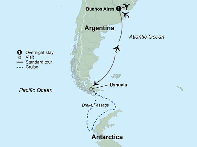 Ushuaia - Disembark Ship - Fly to Buenos Aires - Tour EndsAfter breakfast, disembark in Ushuaia and proceed to the airport for your flight* to Buenos Aires before flying home. Meal included: Breakfast