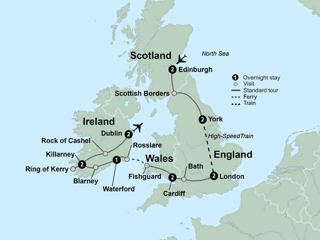 Travel to fascinating cities and through the magical countryside of England, Ireland, Scotland and Wales, exploring historic places, iconic sights, and rich heritages. Take in the world-famous Royal Edinburgh Military Tattoo. Be mesmerized by the breathtaking landscapes of Ireland’s Ring of Kerry, the rolling hills of the Scottish Borders, and the Welsh and English countryside. Step into the past at York’s medieval Shambles and Bath’s ancient Roman ruins. Get acquainted with Britain’s pageantry in the royal cities of Edinburgh and London and soak in the cities’ iconic sights on guided walking tours. This is an unforgettable journey for the books through Britain and Ireland.