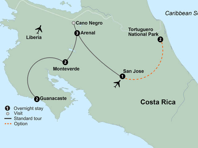 Arenal - Cano Negro - ArenalEmbark on a Cano Negro guided riverboat trip in a covered canoe known as a panga. These 20,000 acres are home to the largest viewable collection of indigenous wildlife in all of Costa Rica. Go in search of caimans, river otters, sloths, monkeys, river turtles, exotic birds and rare butterflies. Later, return to Arenal for the chance to relax at your resort. Meal included: BreakfastAccommodation: Mountain Paradise Resort & Spa