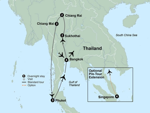 Overnight FlightEmbrace the diversity of Southeast Asia as you explore Thailand on this classic journey featuring lavish temples, cultural discoveries, and its stunning natural beauty. From tropical vistas to gilded palaces and ancient ruins, Thailand offers up a piece of its soul to travelers – and your story starts here. Accommodation: Amari Bangkok