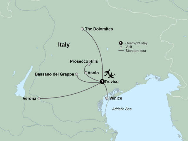 Unpack once and take in the vineyards, villas, peaks, and prosecco of Veneto. Settle into a centrally located hotel in Treviso, the historic mainland outpost for the island-city of Venice. Savor the Venetian inspiration on terrafirma, solid ground, so you have the flexibility to explore on land and by water, with time to dive into Venice, Verona, and the Dolomites. Take in the artist haven of Asolo and get a taste of Italy’s Prosecco region. Immerse yourself in local culture at a historic villa near Bassano del Grappa, retracing the history of a noble family of Venice. This is your opportunity to dive in and truly experience Northern Italy.