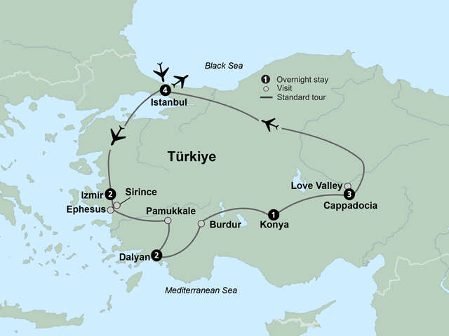 - Explore the towering rock formations of Cappadocia and underground cities of past civilizations.