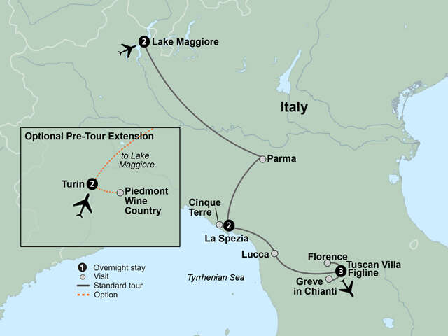 Experience the romance of Italy's lakes region, the colorful coast of the Italian Riviera, and the rolling hills of Tuscany.