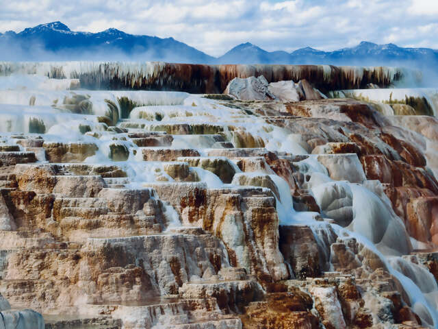 Gardiner - Yellowstone Northern Loop - GardinerToday, explore Yellowstone’s northern loop. Your first stop will be Mammoth Hot Springs. Here, bubbling pots of geothermal water trickle down the step-like terraces, creating incredible shapes and colors. Explore the boardwalks that wind through the steaming landscape. Next, head to the Grand Canyon of Yellowstone lookout, where you’ll find yourself standing over the massive, 20-mile-long canyon. Its craggy walls are streaked with brilliant whites, pinks, and oranges from the volcanic minerals contained in the rocks. The Yellowstone River roars along at the bottom over three different waterfalls. Later today, return to your hotel in Gardiner. Meal included: BreakfastAccommodation: DoubleTree by Hilton Downtown