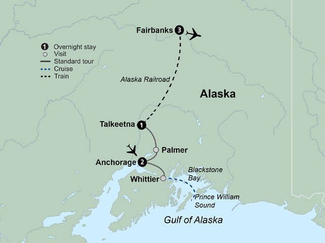 Anchorage, AlaskaYour journey starts in Anchorage, a city on the edge of the snowcapped Chugach Mountains and 60 sparkling glaciers. This is your gateway to wilderness and adventure. Due to varied arrivals, there are no group activities planned for today, so enjoy a chance to explore and have dinner on your own. Accommodation: Hilton Anchorage